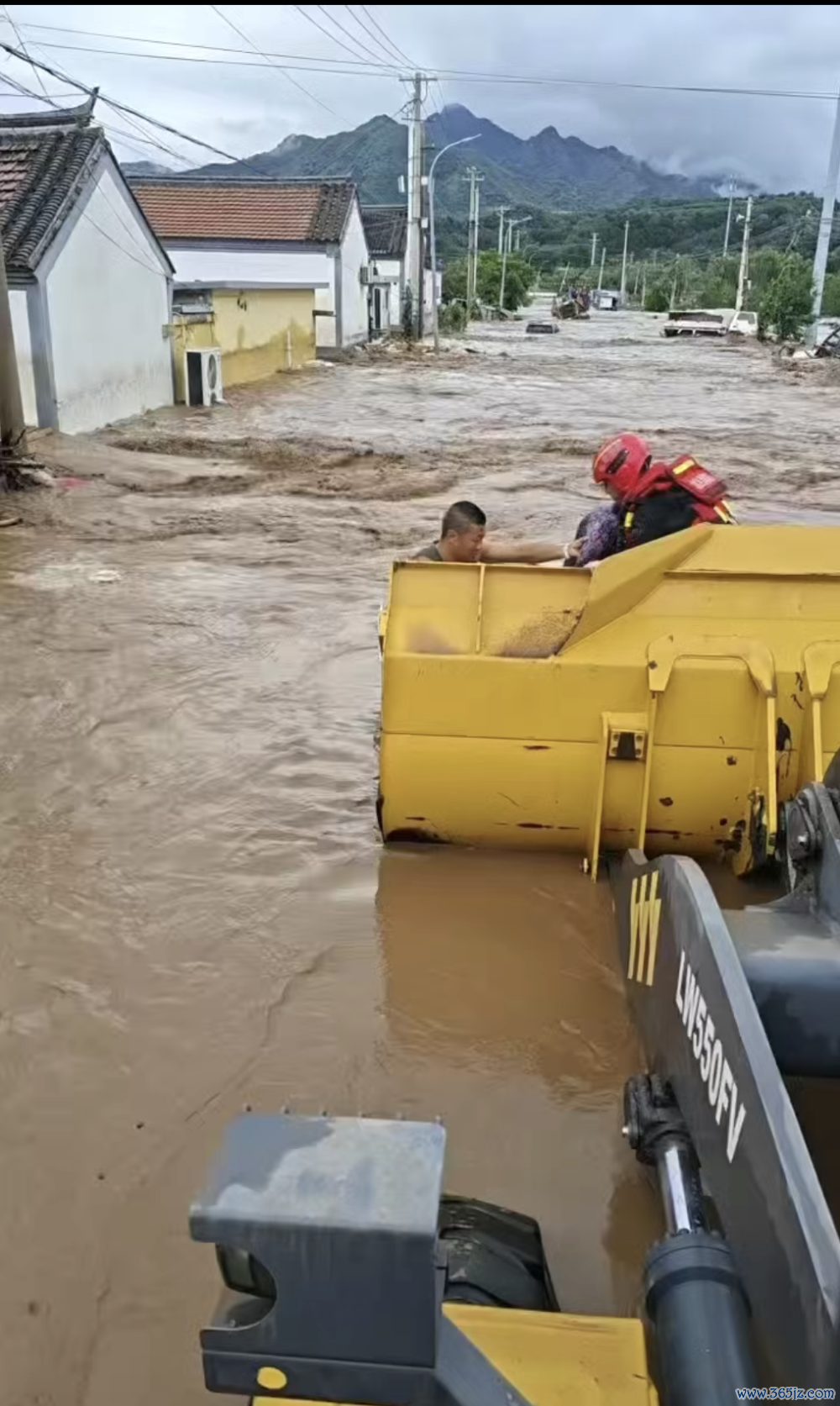 家住隔壁太师庄村的王天宇,一早接到一又友电话,请他赞理去葡萄园村看一看失联的家东说念主。不到7点,王天宇开着铲车抵达现场,目前是他未始见过的称心:“四周齐是水,一米多深,还在不休高潮。”