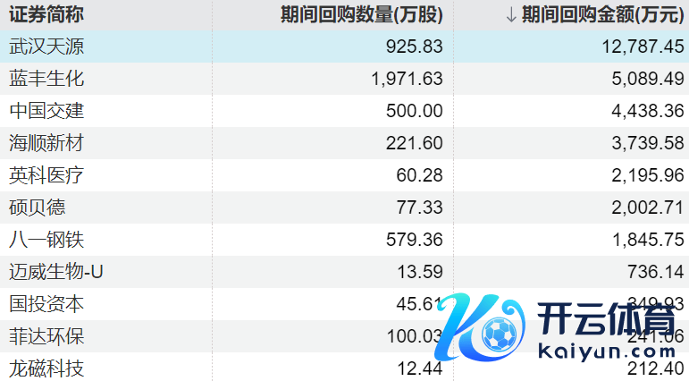 11家上市公司股票获回购,武汉天源回购金额最高11家上市公司股票获回购,武汉天源回购金额最高