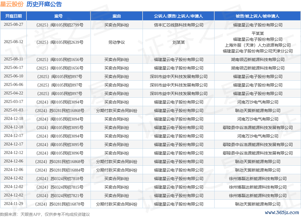 发布日期:2025-10-06 14:23 点击次数:54本站音尘,把柄天眼查APP清晰,近日公布了一则福建星云电子股份有限公司行动被告/被上诉东说念主的开庭公告,详备施行如下: