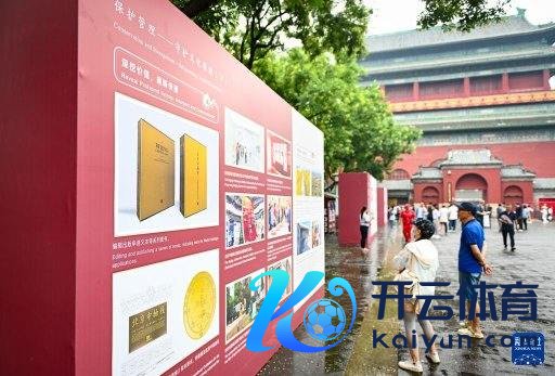 7月27日,东说念主们在北京钟饱读楼广场上不雅看先容北京中轴线申遗见效一周年效果的展板。