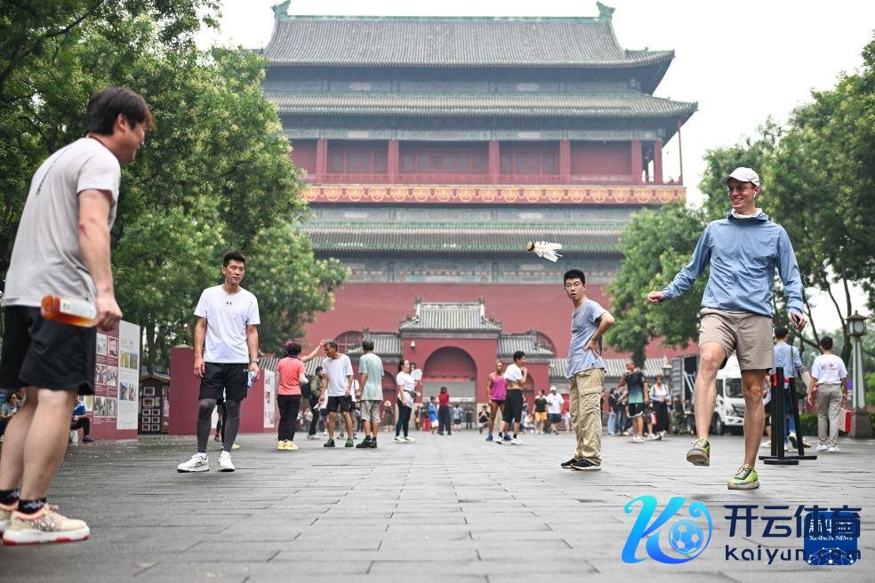 开云体育7月27日,东说念主们在手脚举办地北京钟饱读楼广场上踢毽子。